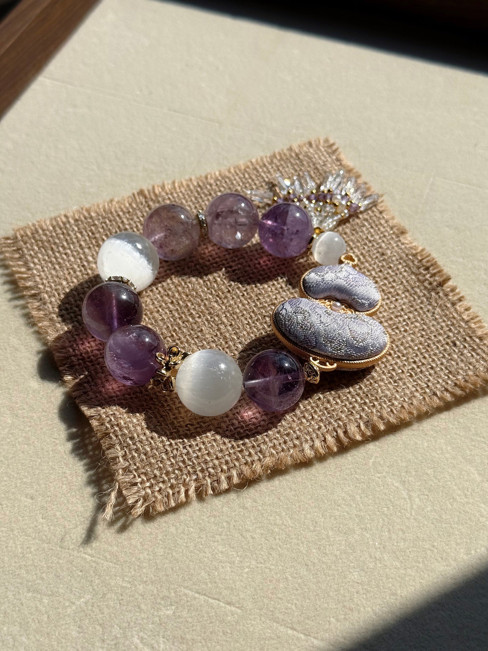 Amethyst & selenite & silk Hulu original design bracelet
