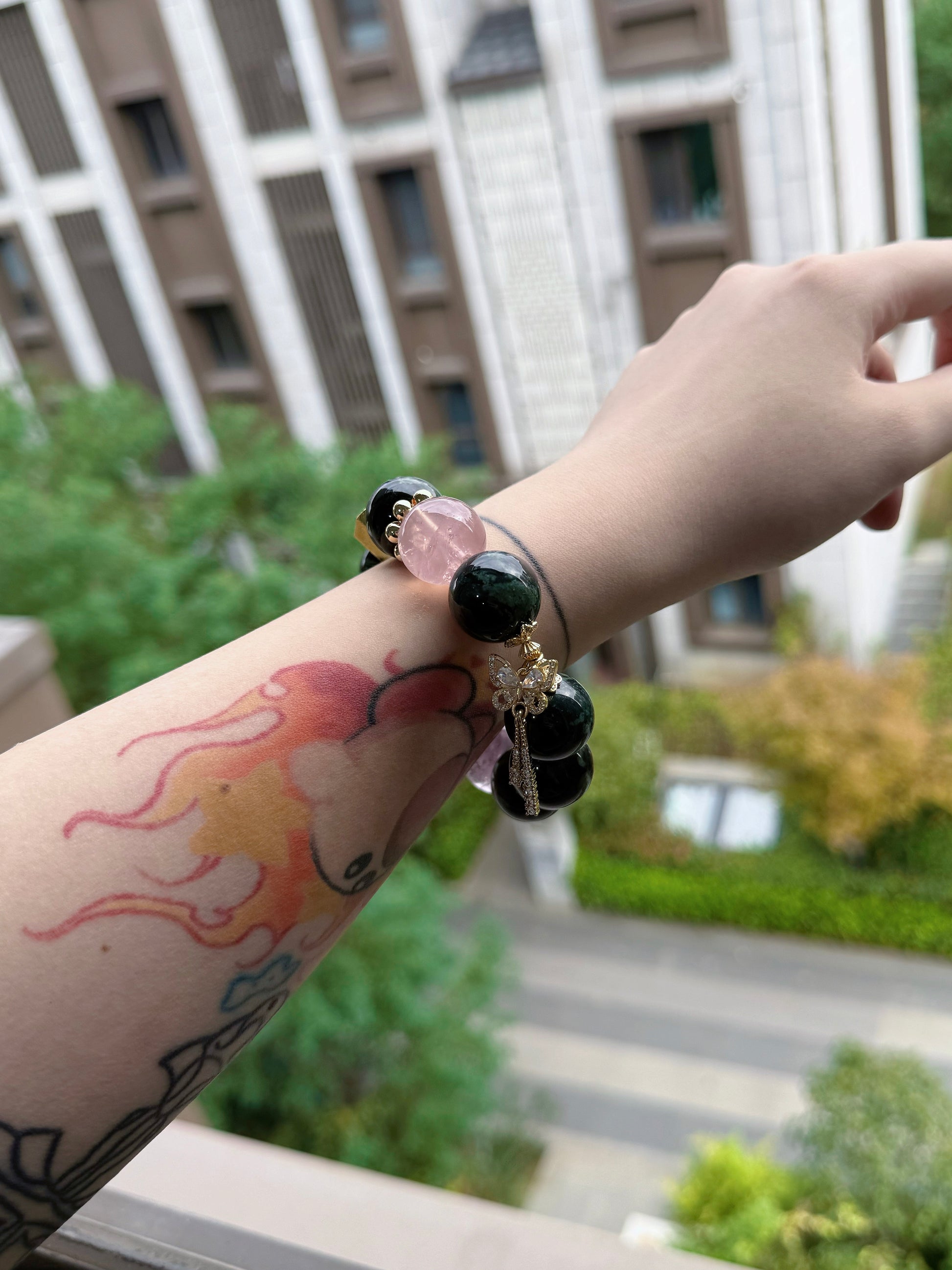 Kambaba jasper &rose quartz & amethyst original design bracelet Chunky beads