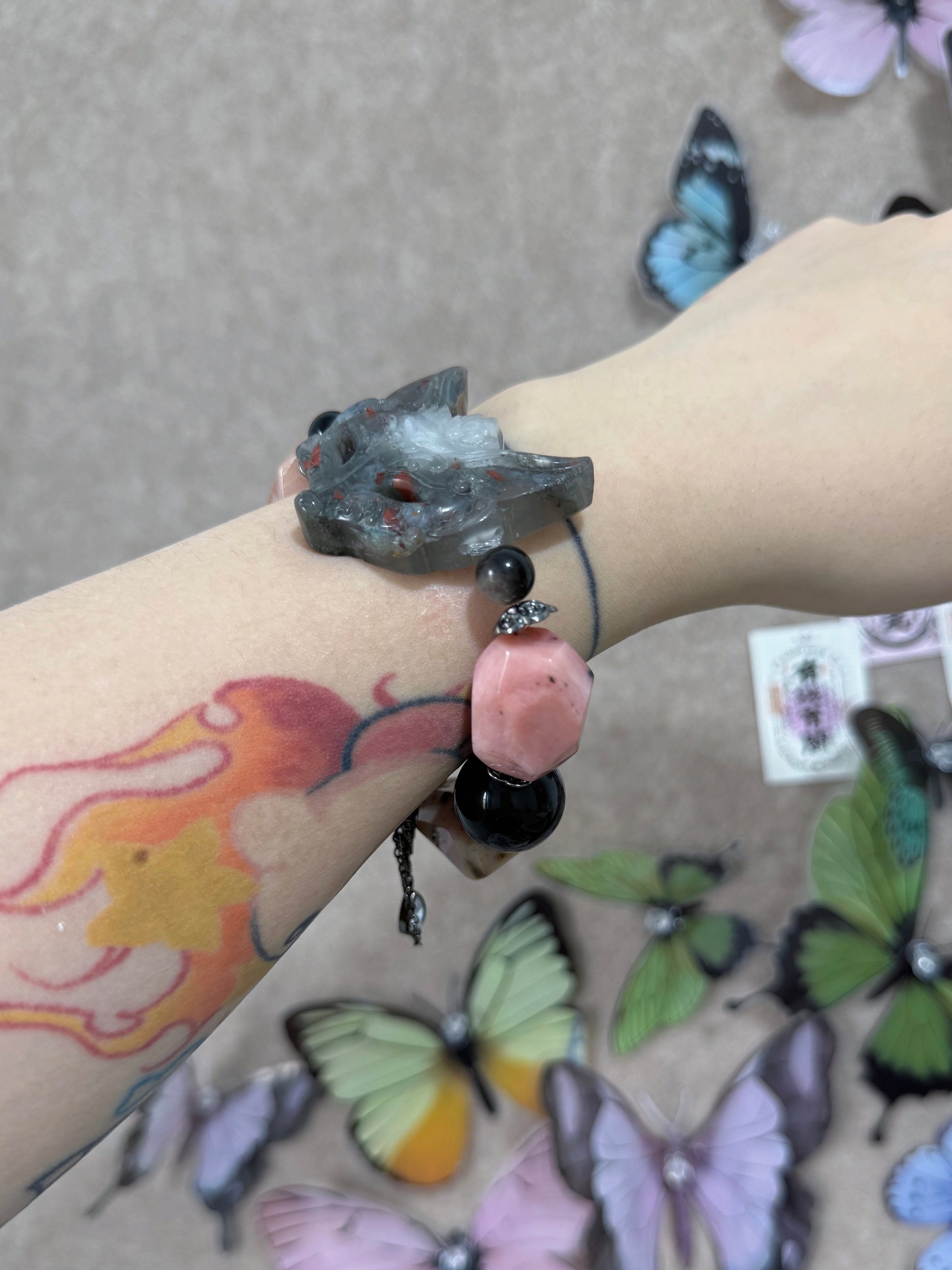 Pink opal & bloodstone fox original design bracelet Chunky beads