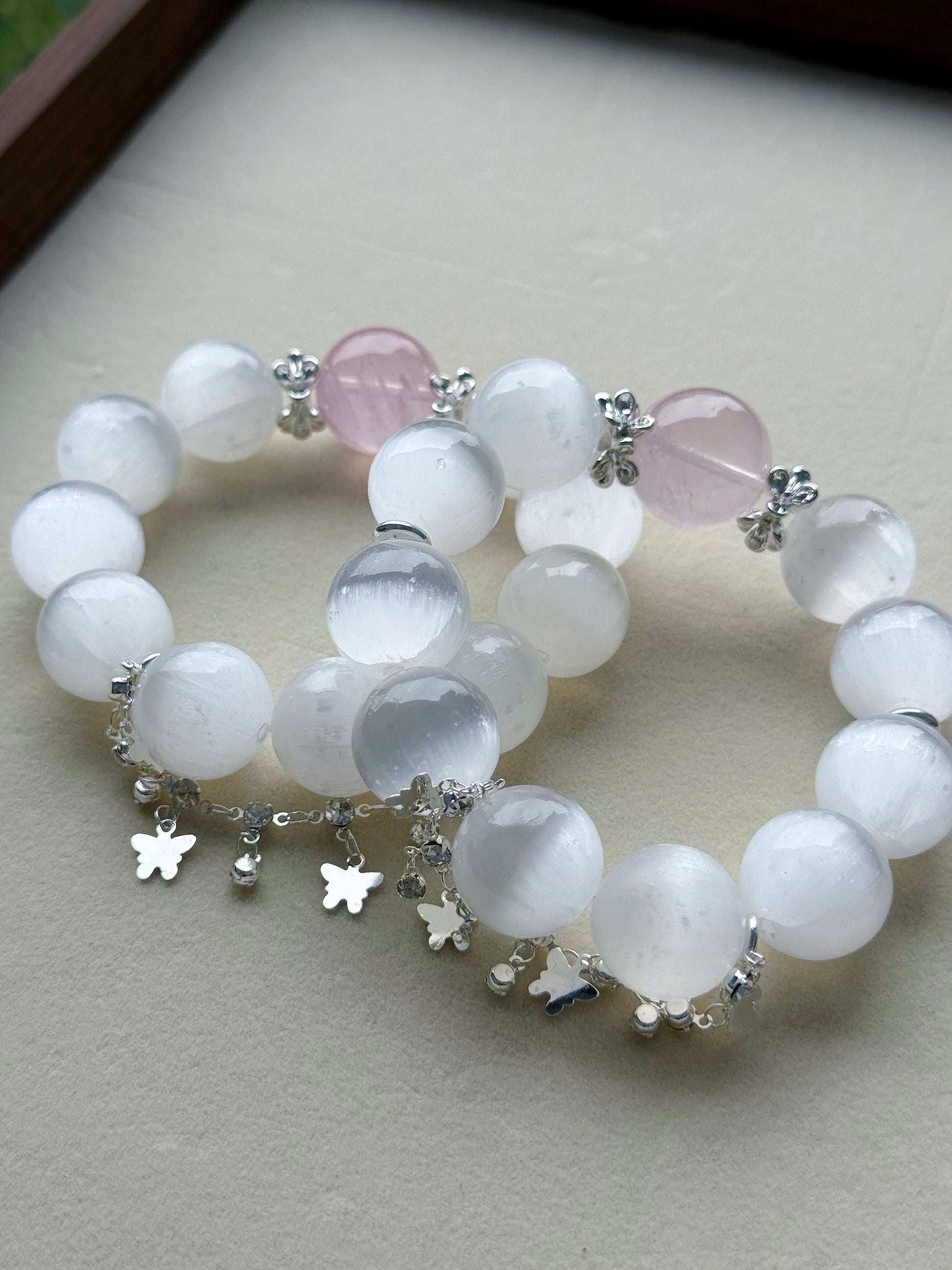 Selenite & rose quartz original design bracelet