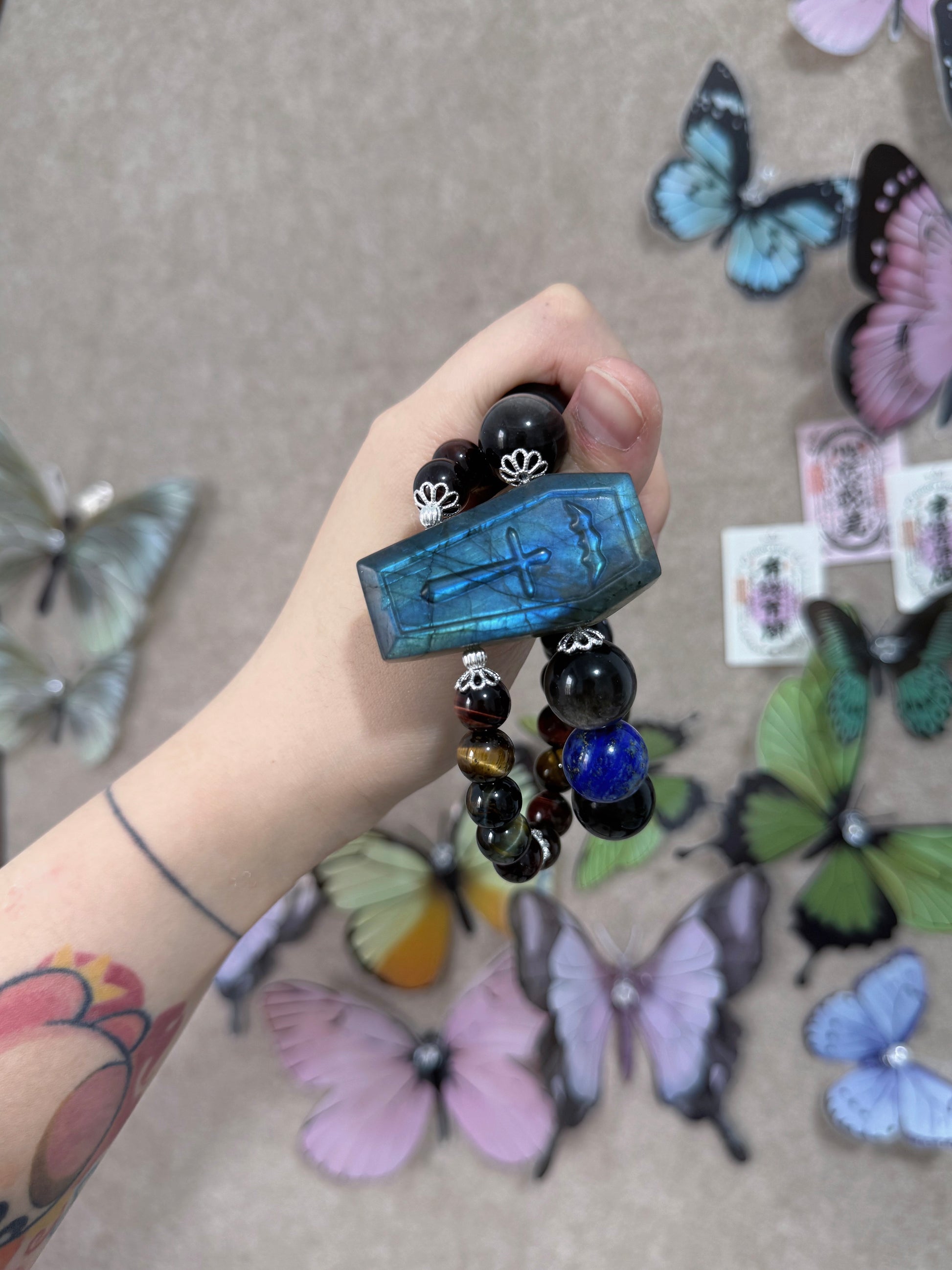 Silver obsidian & tigers eye & labradorite tomb original design bracelet
